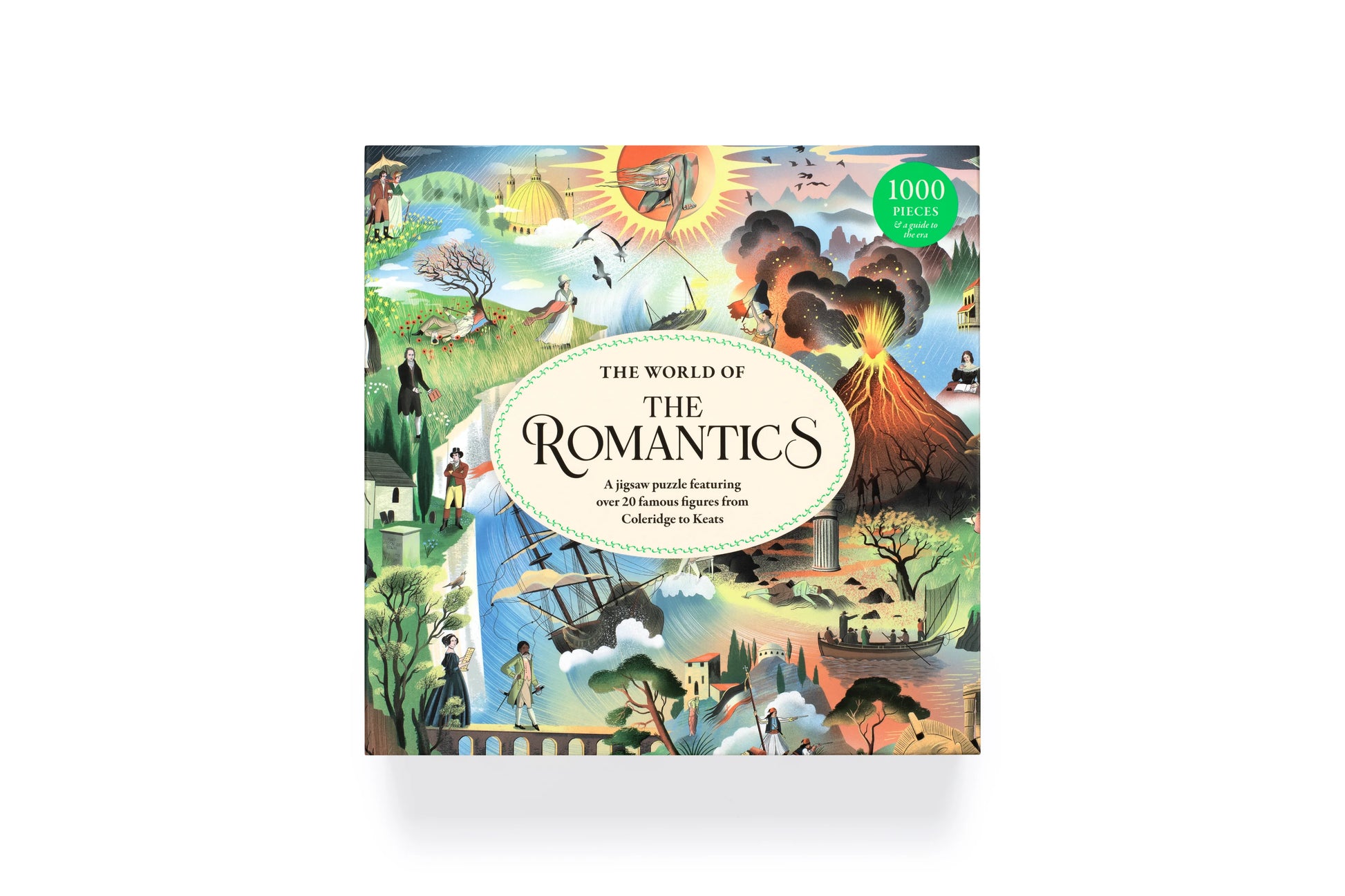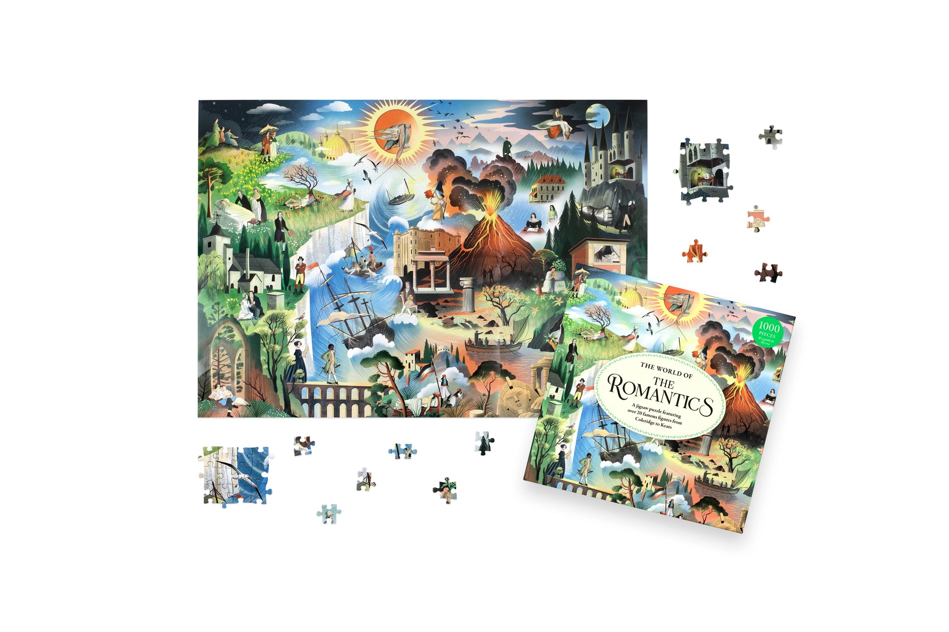 Detta intrikat detaljerade pussel visar berömda poeter, författare, konstnärer, aktivister, musiker och vetenskapsmän från den romantiska rörelsen, däribland makarna Shelley, Lord Byron, Keats, Coleridge, Wordsworth, Blake, Beethoven, Turner och många fler. Res från Lake District till Medelhavet medan du fördjupar dig i naturens och konstens mäktiga kraft, inspirerad av det sublimas estetik.